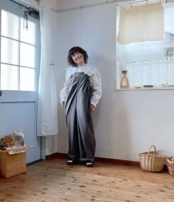 さらりとした生地感が心地よい、大人カジュアルなサロペットです。ゆったりとしたシルエットで、リラックスした着心地をお楽しみいただけます。ライトグレーの色味が、上品で落ち着いた印象を与え、合わせるインナー次第で、様々なスタイリングが可能です。
