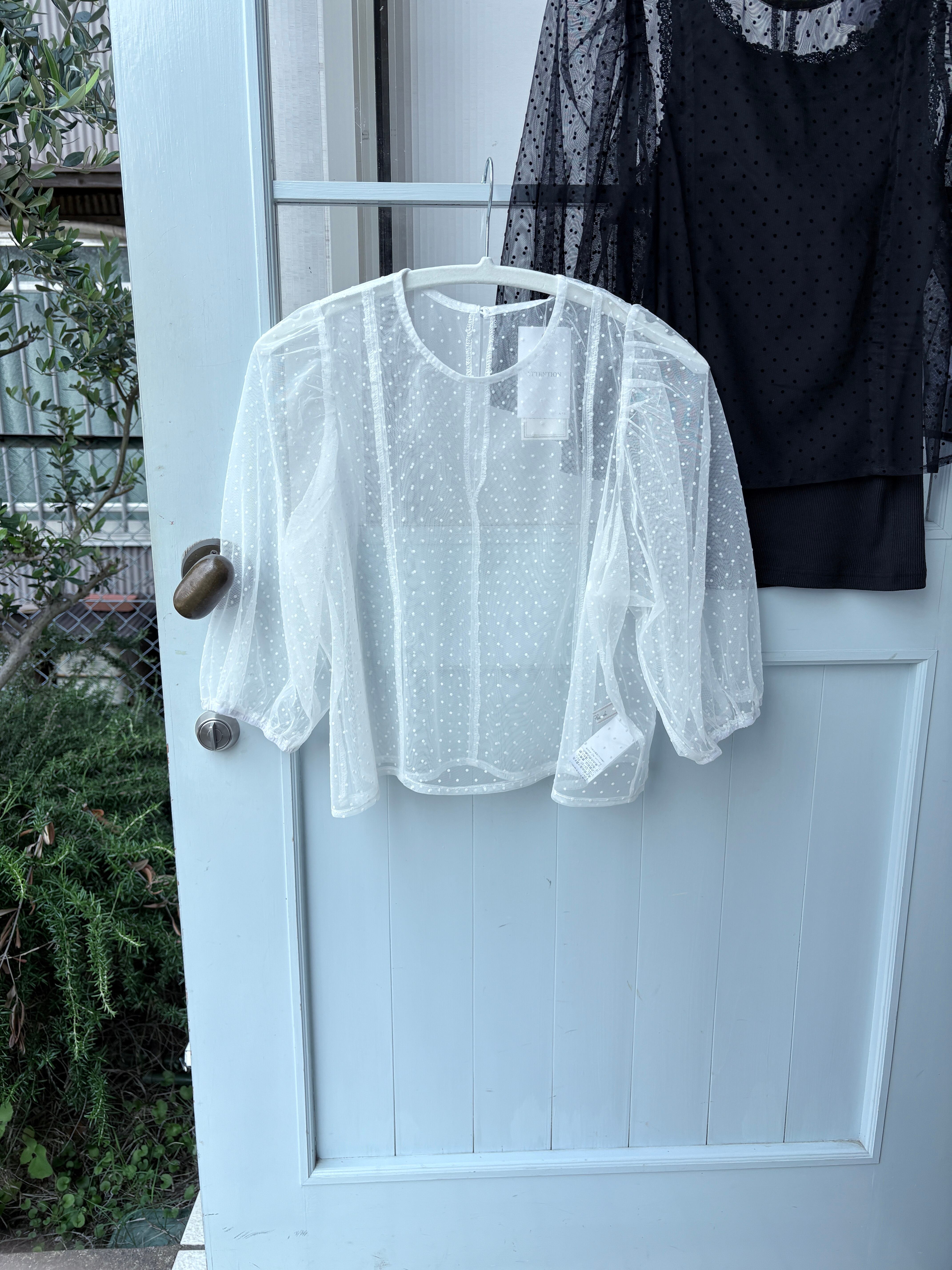 かわいいドット柄チュールのトップスは、シンプルなコーディネートにちょい足しで、かわいさ5割り増しの便利なアイテム。