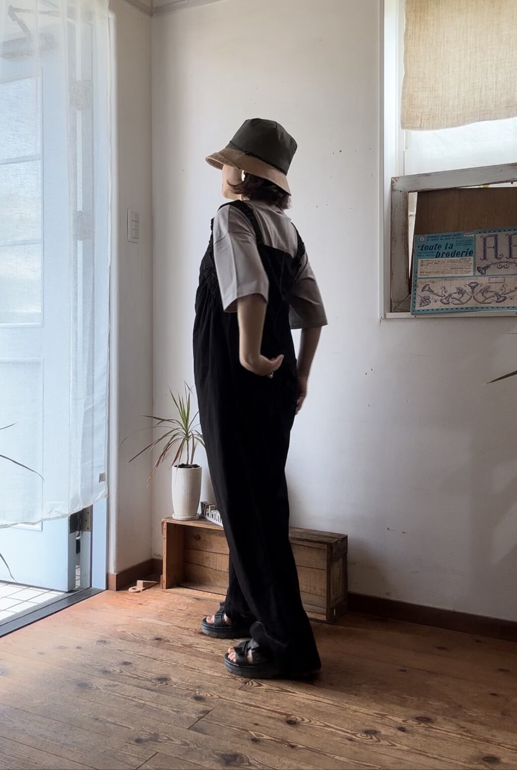 肩ギャザーサロペット